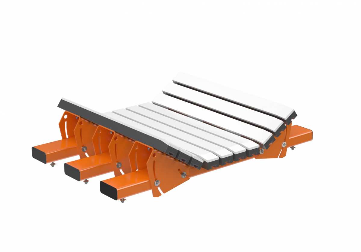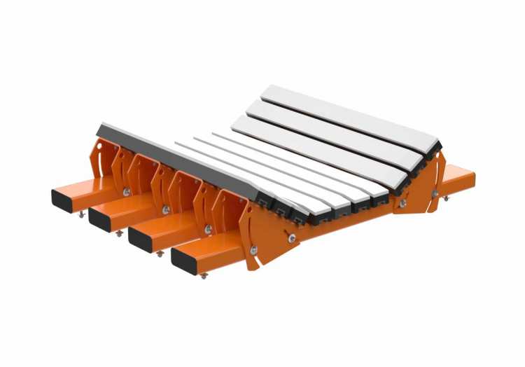 Installed under a belt conveyor loading zone, the Martin® Impact Cradles absorb the force of falling material to prevent damage to the belt and structure. The impact cradles stabilize the belt line to prevent material escape.